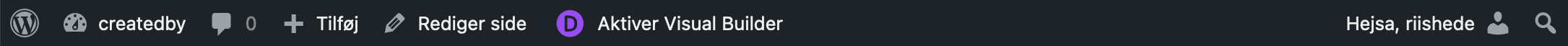 Du kan bruge bjælken til at skifte mellem backend og frontend ved fx at klikke på navnet på din hjemmeside i venstre side. I højre side kan du se dit eget navn og få vist din profil.